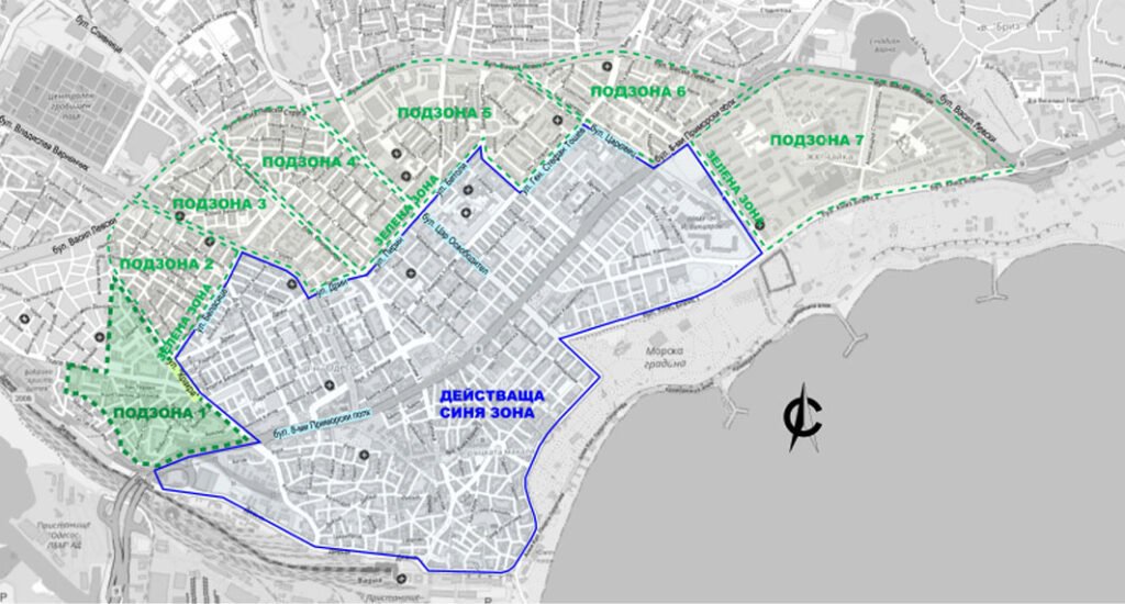 – подзона 2, която включва и се ограничава от булеварди и улици: ул. “Кракра”, ул. „Проф. П. Стоянов“, бул. „В. Левски“, бул. „Вл. Варненчик“, ул. „Д-р Пискюлиев“, ул. „Беласица“;