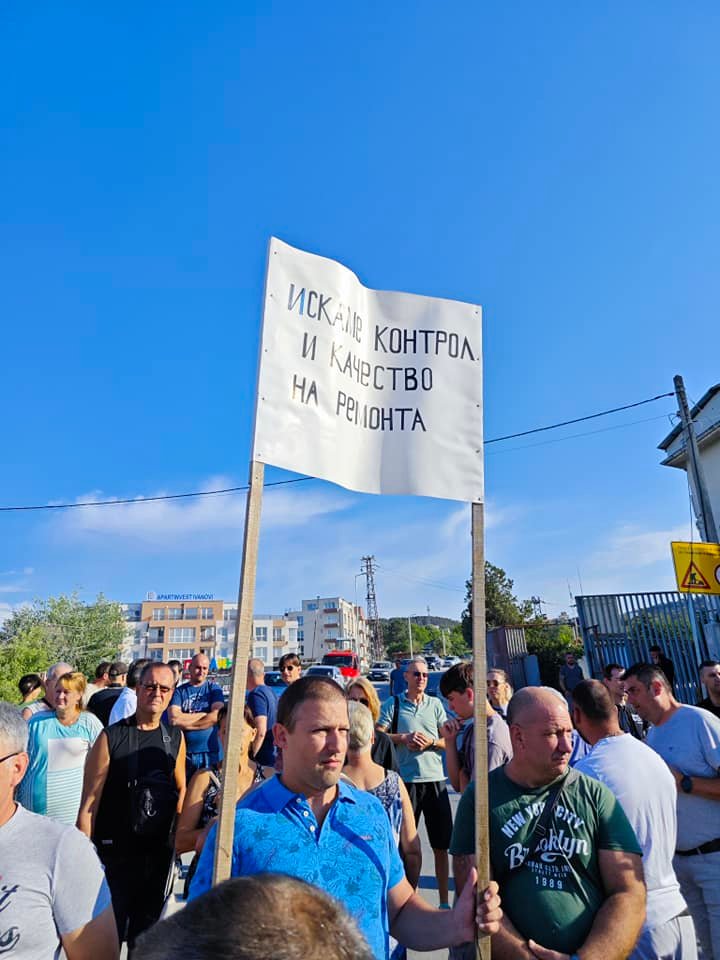 На протеста има представители на общината. Кристина Костадинова, която е директор на Дирекция „Инженерна инфрастрактура“ заяви, че е предвидено ремонтът да приключи до края на този месец.